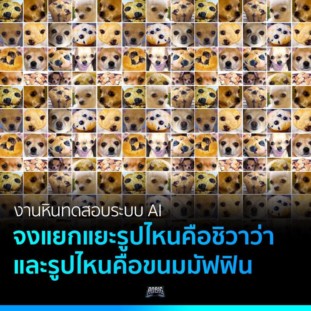 ฟังดูอาจเป็นเรื่องง่ายสำหรับเรา ๆ ในการมองภาพแล้ววิเคราะห์ออกมาว่ารูปไหนคือสุนัขแสนน่ารัก และรูปไหนคือขนมแสนอร่อย แต่กับระบบ AI มันไม่ได้ง่ายดายขนาดนั้น เพราะมันต้องพยายามทำความเข้าใจ โดยใช้รูปฐานข้อมูลจำนวนมาก เพื่อเอามาเรียนรู้ว่าหน้าน้อนหมานั้นสามารถมีได้กี่แบบ และรูปมัฟฟินมีได้กี่แบบ แล้วหาความแตกต่างจากฐานข้อมูลรูปภาพเหล่านั้น ซึ่งปรากฏว่าแม้แต่ AI ที่ดูจะล้ำสมัยที่สุด ก็ยังไม่สามารถแยกแยะออกมาได้ 100% แต่ก็ถือว่าเพลียดไปเพียงรูปเดียวจาก 7 รูป