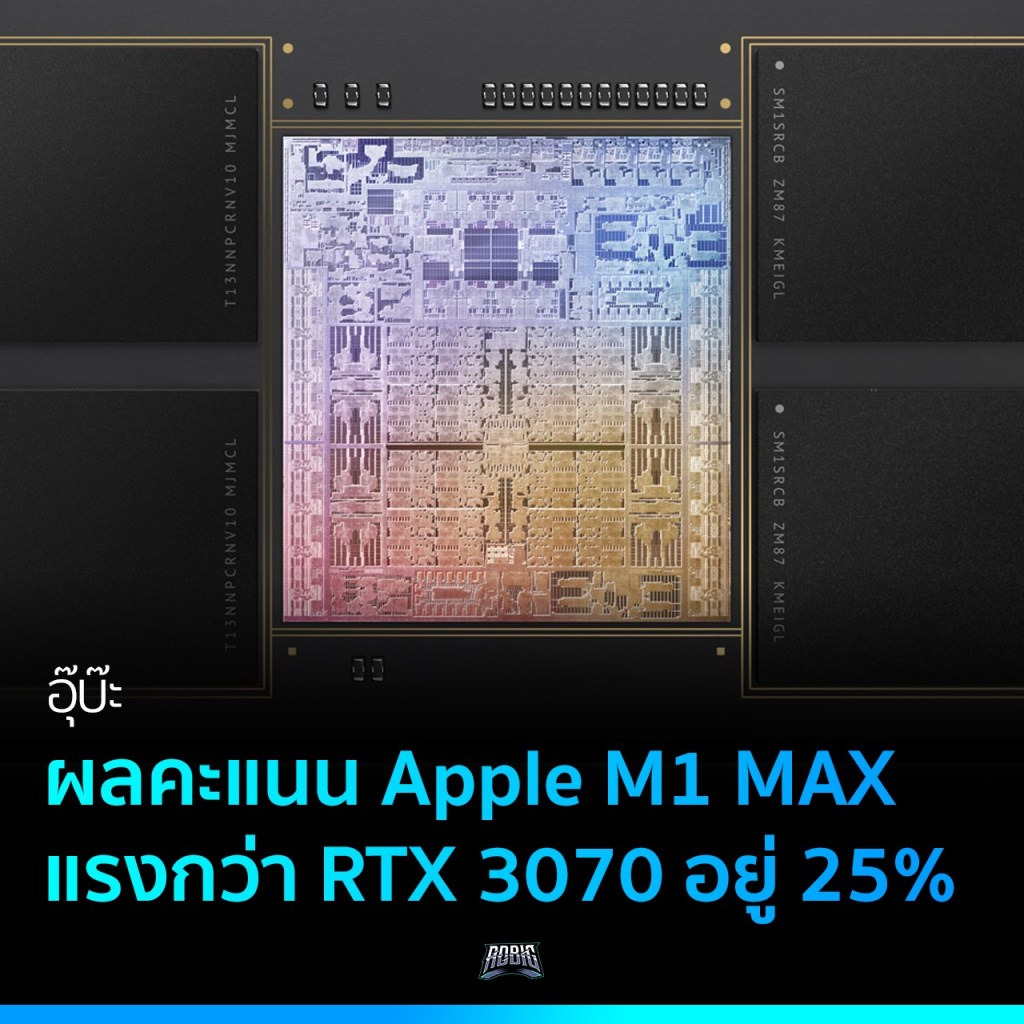 ผลทดสอบควาแรงของชิปใหม่ Apple M1 MAX ใน MacBook Pro ตัวใหม่ล่าสุดที่เพิ่งเปิดตัวไปมาแล้ว เป็นการวัดผลประสิทธิภาพของชิปกราฟิก GPU เทียบกันกับ NVIDIA GeForce RTX 3070 ผลปรากฎว่า ชิป Apple แรงกกว่าถึง 25% กันเลยทีเดียว