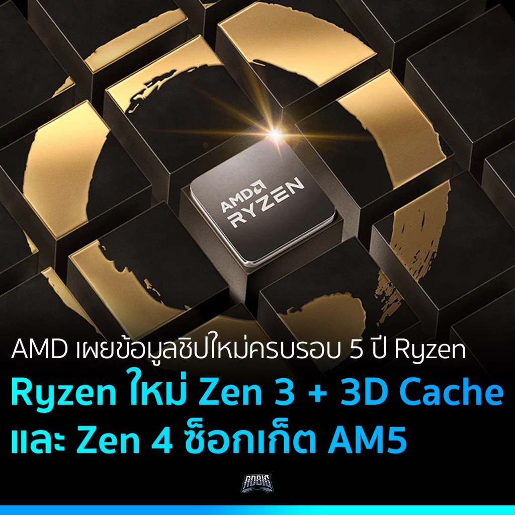 AMD ฉลองครบรอบ 5 ปี Ryzen ยืนยันถึงชิปตัวต่อไปว่าจะมาช่วงไตรมาสแรก 2022 พร้อมฟีเจอร์ CPU core complex dies (CCDs) ผสมระหว่างเทคโนโลยีสถาปัตยกรรม Zen 3 เข้ากับหน่วยความจำ 3D Vertical Cache ขนาด 64 MB เพิ่มประสิทธิภาพให้สูงขึ้นอีกราว 4% – 25% ในการเล่นเกม