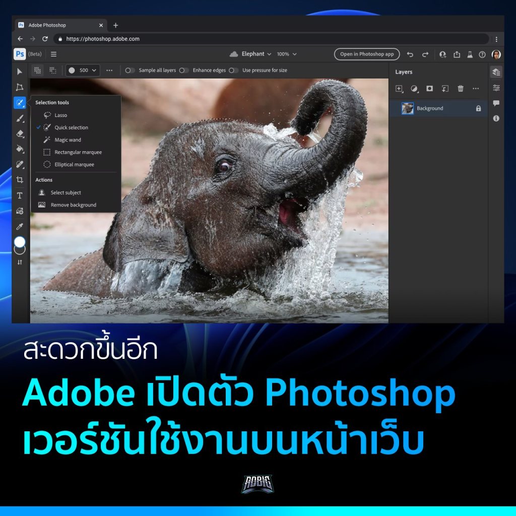 ข่าวดีสำหรับคนใช้ Photoshop, Illustrator ล่าสุด Adobe ประกาศเปิดตัวเวอร์ชันใหม่สำหรับใช้งานผ่านหน้าเว็บได้แล้ว แต่ว่าก็อาจจะยังไม่ได้สามารถทำได้ทุกอย่างเต็มเหมือนกับเวอร์ชัน Desktop ปกตินะ แต่ก็เพียงพอในการทำงานด้วยเครื่องมือพื้นฐานทั่วไปที่ใช้กันประจำ ซึ่งจะเพิ่มความสะดวกในการทำงานร่วมกันหลายคนมากยิ่งขึ้น