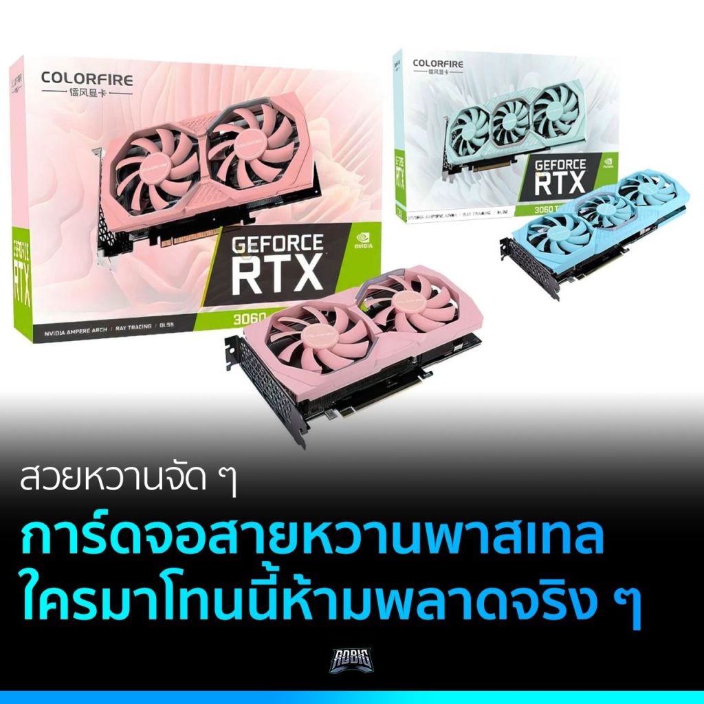 เห็นรูปแล้วก็ต้องกรี๊ดร้องกันเลยทีเดียว กับใครที่เป็นสายแต่งคอมหวาน ๆ จะเห็นผู้ชายสายหวาน หรือจะเป็นสาว ๆ เกมมิ่งก็ดี การ์ดจตัวนี้นี่แหละเหมาะ เป็นผลงานจาก ColorFire รุ่นใหม่ล่าสุด ดีไซน์ด้วยสีชมพูและฟ้าอ่อนแบบโทนพาสเทล เอาใจคนรักสีหวานสุด ๆ