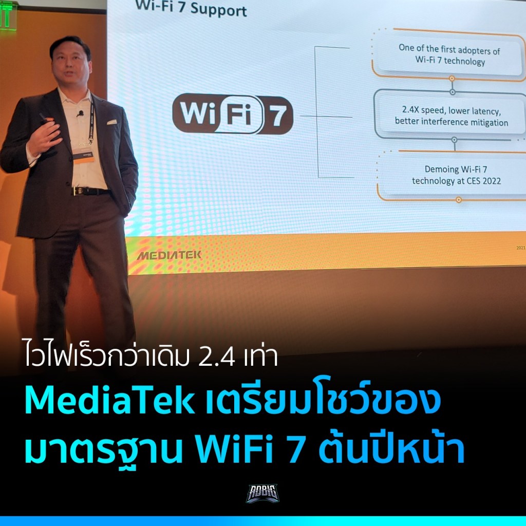 ยังไม่ทันได้ใช้ WiFi 6 เลย ล่าสุด MediaTek ขิงโชว์เทคโนไลยีไร้สายตัวใหม่มาเพิ่มแล้ว WiFi 7 เวอร์ชันใหม่ จัดเต็มเรื่องสเปก ที่จะเร็วกว่า WiFi 6 เดิมถึง 2.4 เท่า