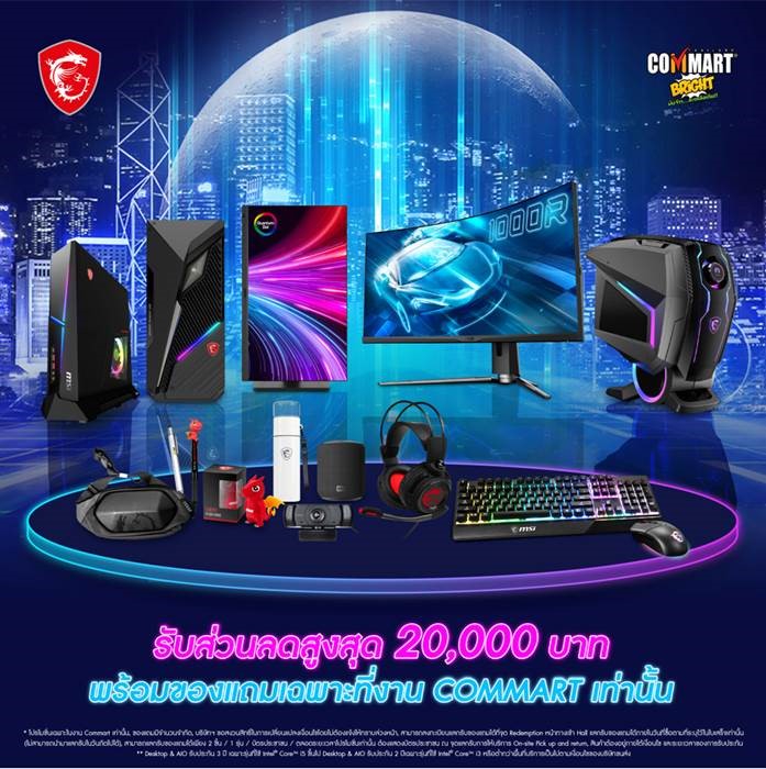 MSI แบรนด์ผู้นำระดับโลกด้านอุปกรณ์คอมพิวเตอร์และสินค้าเกมมิ่ง ร่วมส่งสินค้า อาทิ คอมพิวเตอร์เดสก์ท็อป, คอมพิวเตอร์ออลอินวัน, มินิพีซี รวมไปถึงจอมอนิเตอร์ พร้อมส่วนลดสุด 20,000 บาทและของแถมพิเศษส่งท้ายปี อาทิ หูฟังเกมมิ่ง, เมาส์และคีบอร์ดเกมมิ่ง, ขาตั้งจอคอม, โคมไฟติดจอคอม และอื่นๆอีกมาย ในงาน Commart ครั้งที่ 57 ระหว่างวันที่ 25 – 28 พฤศจิกายน 2564 ที่ศูนย์นิทรรศการและการประชุม ไบเทค บางนา ฮอลล์ 98-99 บูธ B12