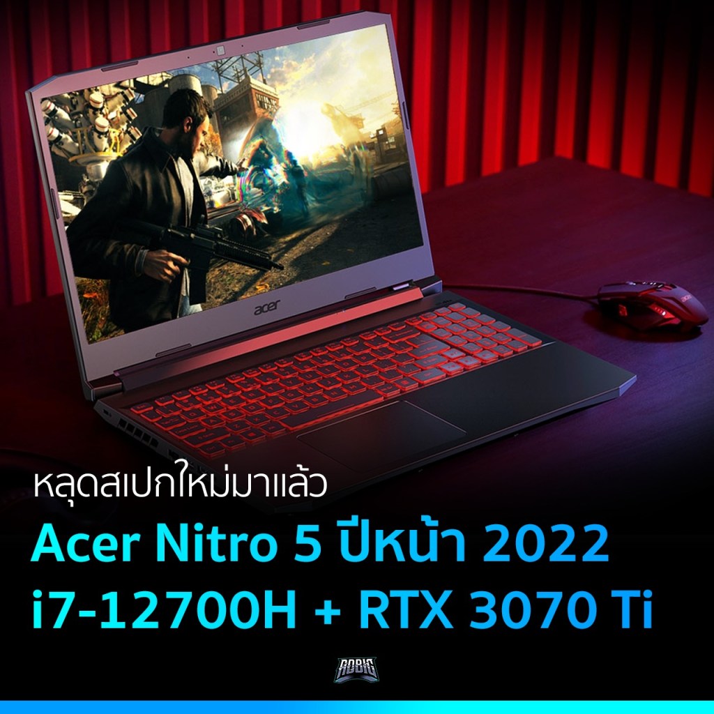 ข้อมูลหลุดโน้ตบุ๊กเกมมิ่ง Acer Nitro 5 รุ่นใหม่จากฝรั่งเศส ที่คาดว่าจะขายในปีหน้า 2022 จะมาพร้อมกับชิป CPU ตัวใหม่ Intel Core i7-12700H เป็นชิป 14 คอร์ จับคู่กับการ์ดจอ GeForce RTX 3070 Ti หน้าจอ 1440p 165 Hz และแรม 8GB DDR4-3200