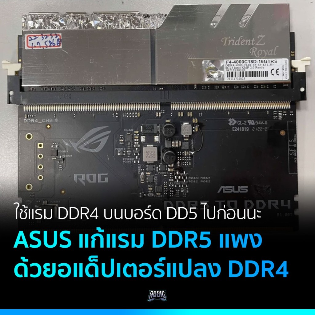 ด้วยปัญหาความขาดแคลนชิ้นส่วนในตลาด ส่งผลราคาแรม DDR5 นั้นสูงเกินจะซื้อไหว ล่าสุด ASUS เลยคิดทางออกใหม่มานำเสนอ กับตัวอแด็ปเตอร์แปลงให้สามารถใช้แรม DDR4 ลงบนบอร์ด DDR5 ได้