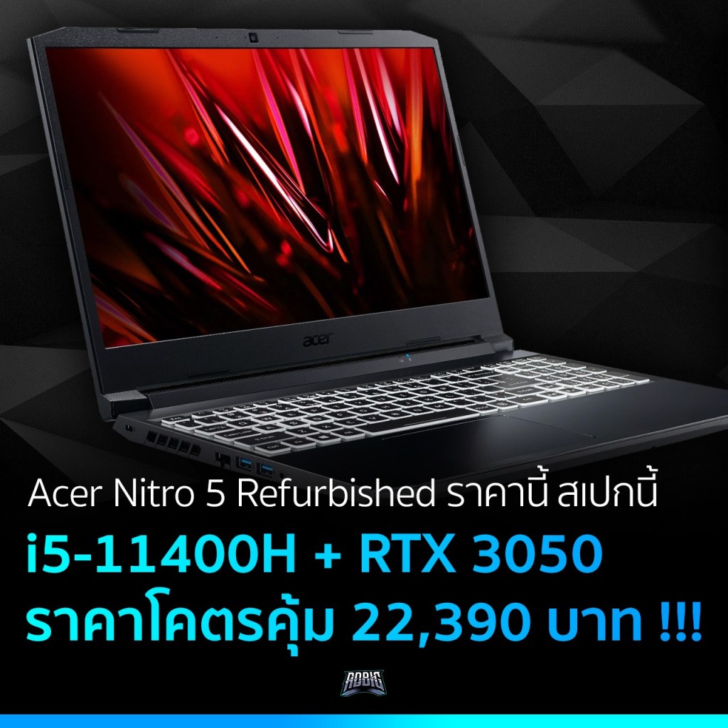 เห็นสเปกความคุ้มค่าขนาดนี้ ใครจะอดใจไหว ย้ำกันอีกที Refurbished Gaming Notebook Nitro 5 AN515-57-58LR (Black) สเป็กที่ตอบโจทย์สุด ๆ สำหรับสายคุ้มค่า ตามไปดูกันได้ที่