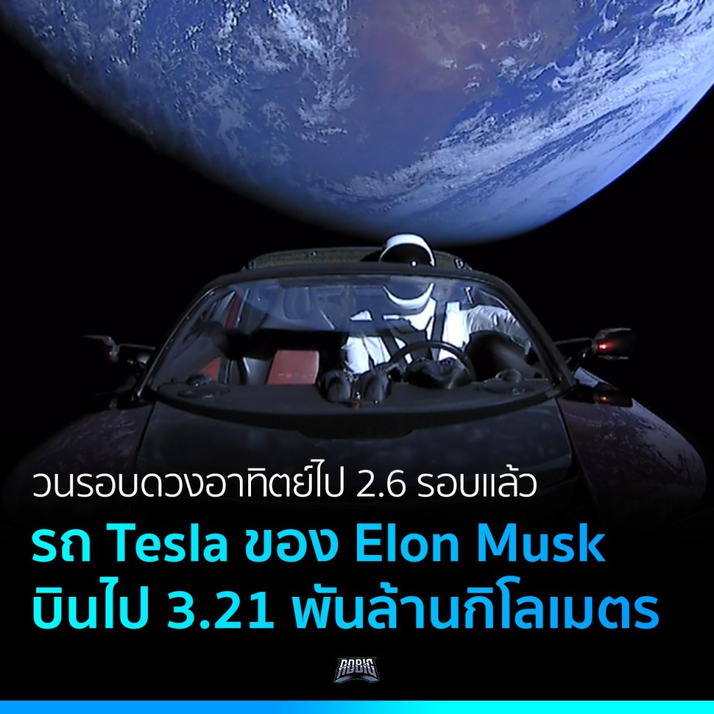 4 ปีก่อน จรวด Falcon Heavy ที่ทรงพลังที่สุดของ SpaceX ของป๋า Elon Musk ได้ถูกปล่อยออกไปสู่อวกาศพร้อมด้วยรถ Tesla เปิดประทุนส่วนตัวของป๋าแก โดยมีเส้นทางโคจรเป็นรูปสี่เหลี่ยมผืนผ้ารอบดวงอาทิตย์ ล่าสุดเมื่อวันจันทร์ที่ผ่านมา เจ้ารถคันนี้ได้อยู่ห่างออกไปจากโลกเราถึง 376 ล้านกิโลเมตร และห่างจากดาวอังคาร 321 ล้านกิโลเมตร เข้าสู่เขตพื้นที่อวกาศที่ยังไม่เคยมีมนุษย์คนไหนเคยเข้าไป