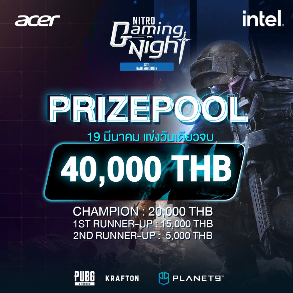 เกมที่สอง คือ เกม PUBG ที่จะมีแข่งขันในวันเสาร์ที่ 19 มีนาคม 2022 เริ่ม 18.00 น. Prizepool 40,000 บาท