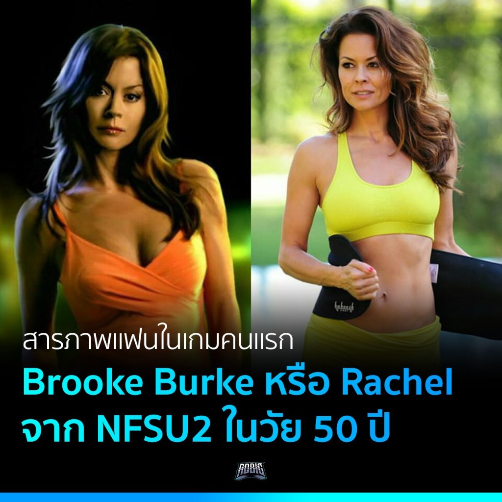นี่เป็นการเปิดเผยเป็นครั้งแรกถึงแฟนคนแรกในเกมเลยนะ หยอก ๆ แต่เชื่อว่ามีเพียบ 555 แฟนเกม Need for Speed Underground 2 น่าจะรู้จักเธอในชื่อของ Rachel Teller ตัวละครผู้ช่วยหลักในเกม แต่ตัวจริงของเธอที่มาถ่ายรูปรับสวมบทนั้น จริง ๆ แล้วคือ Brooke Burke เป็นพิธีกรรายการทีวีชาวอเมริกัน เกิดตั้งแต่ 8 กันยายน 1971 ปัจจุบันก็อายุ 50 ปีแล้ว