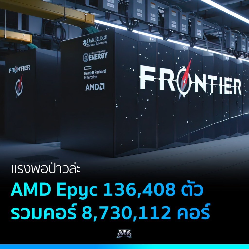 ที่สุดของวงการเครื่องซุปเปอร์คอมพิวเตอร์ตัวใหม่ล่าสุด The Frontier ผลงานการสร้างจาก Oak Ridge National Laboratory ความแรงไม่ต้องพูดถึง ใช้ชิป AMD Epyc 64 คอร์ ความเร็ว 2GHz ทั้งหมด 136,408 ตัว จำนวนคอร์ทั้งหมดที่มีคือ 8,730,112 คอร์