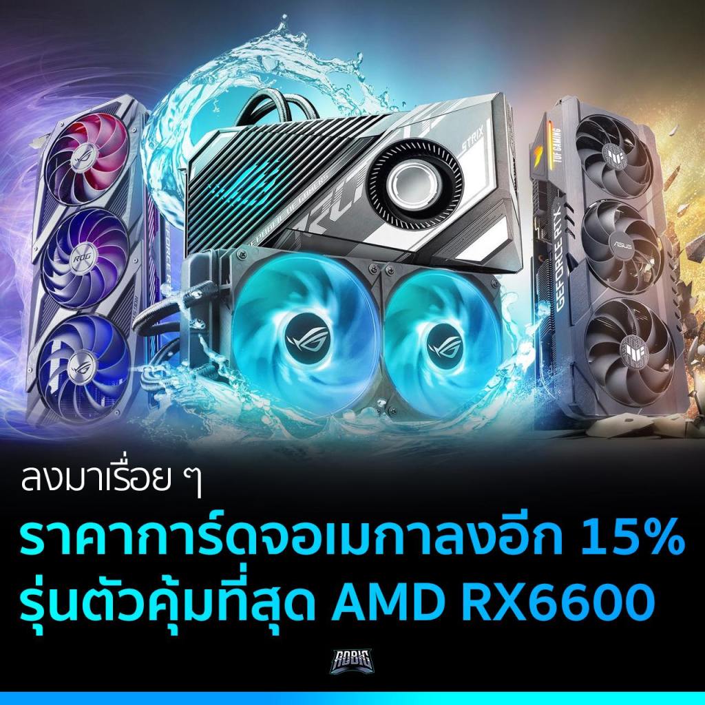 ตัวเลือกที่น่าสนใจมากที่สุดตัวนึงคือรุ่น AMD Radeon RX 6600 ที่ราคาเมกาตอนนี้ลงมาอยู่ที่ $290 หรือประมาณ 9,950 บาท ถูกกว่าราคาแนะนำขายกลาง MSRP อีก $40 หรือประมาณ 1,370 บาท ซึ่งความแรงของการ์ดตัวนี้ก็ใกล้เคียงกันกับ GTX 1080 Ti, RTX 2060 Super และ RX 5700
