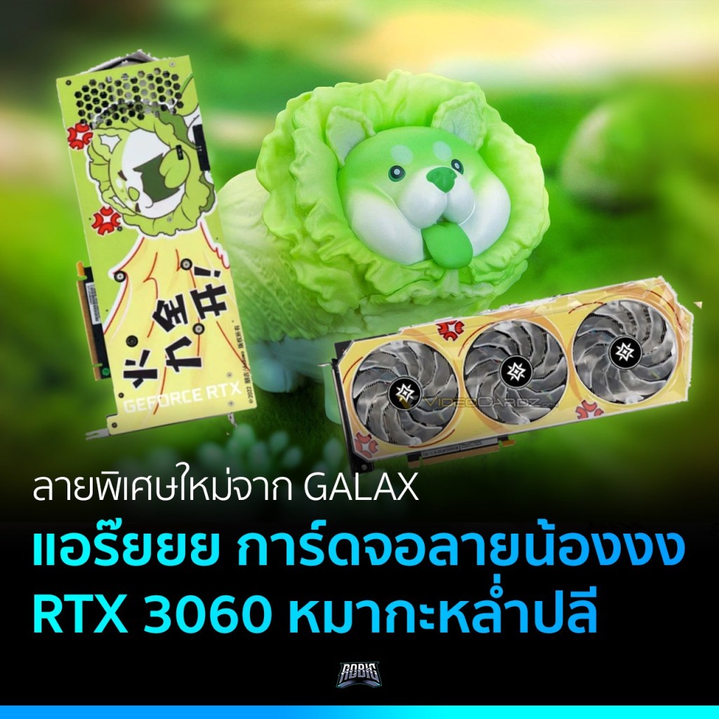 รุ่นการ์ดที่เอามาเป็นก็เป็นรุ่นมหาชน คือ RTX 3060 ชื่อรุ่นการ์ดตัวนี้เต็ม ๆ ก็คือ GALAX GeForce RTX 3060 Vegetables Fairy “Cabbage Dog”