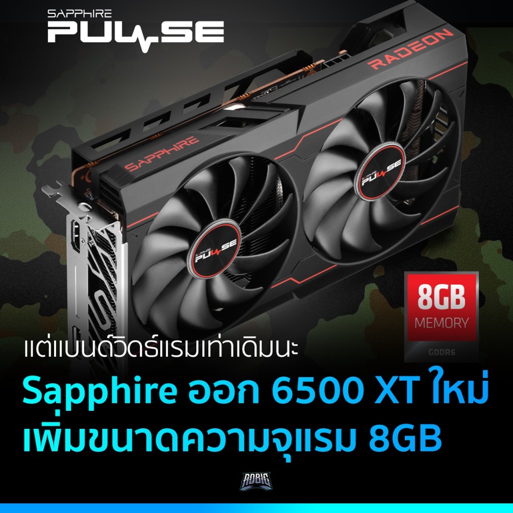 Sapphire เปิดตัวการ์ดจอรุ่นใหม่ Radeon RX 6500 XT มาพร้อมแรมขนาด 8GB ยังคงเป็นแรม 64-บิต ที่มีแบนด์วิดธ์ค่อนข้างช้า 144 GB/s อยู่เหมือนเดิม แต่เป็นขนาดที่เพิ่มขึ้นมาอีกเท่าตัว