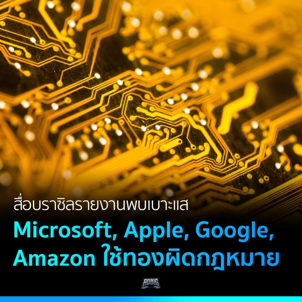 รายงานล่าสุดจากหนังสือพิมพ์บราซิลบอกว่าพบส่วนผสมทองคำที่มาจากการทำเหมืองแบบผิดกฎหมายจากป่าฝนอเมซอน ในอุปกรณ์ต่าง ๆ จาก Microsoft, Apple, Google และ Amazon โดยซื้อมาจากตัวกลาง 2 บริษัทที่ชื่อว่า Brazilian Marsam และ Italian Chimet