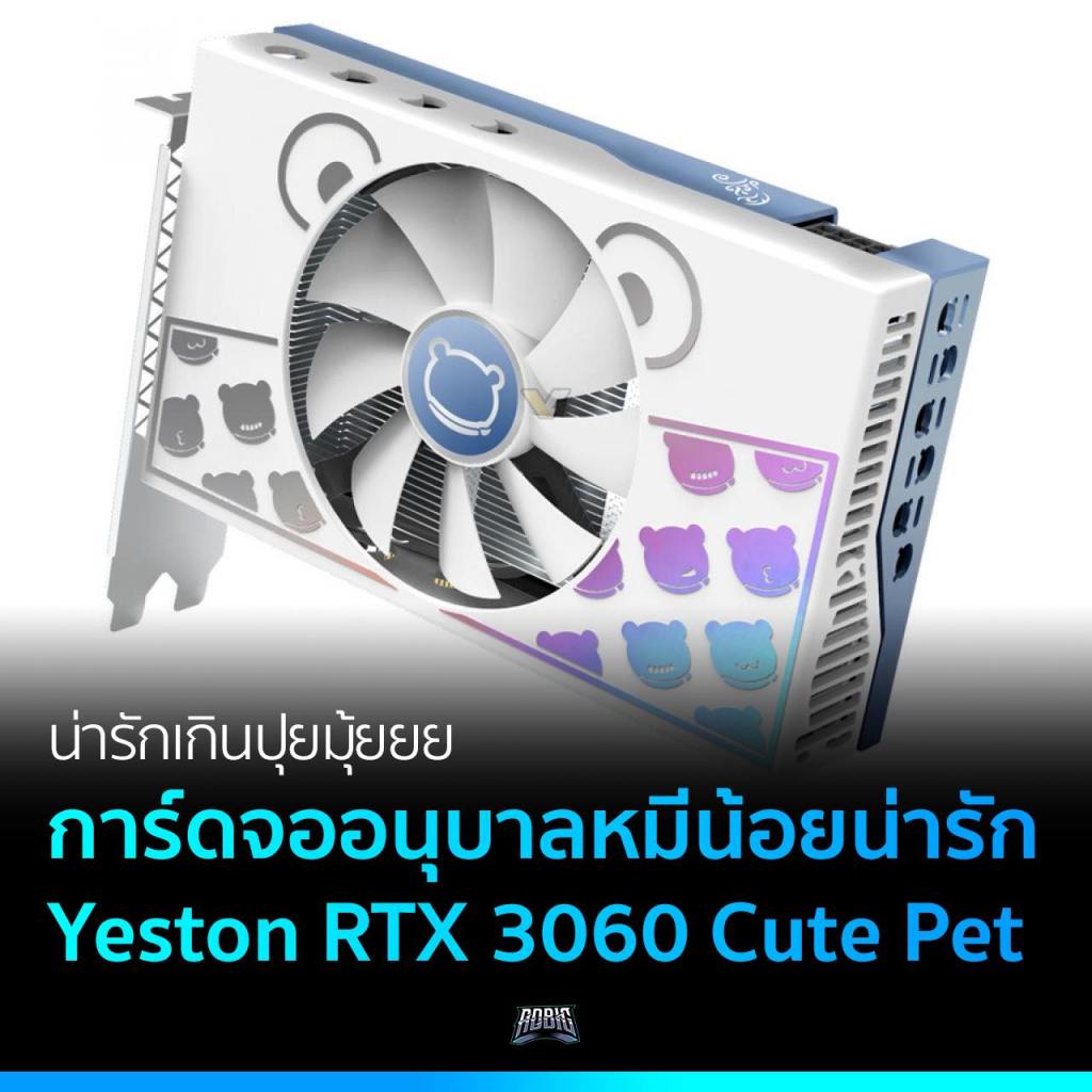 เห็นปุ๊ปแล้วต้องร้องออกมาว่าอื้อหือเลยทีเดียว กับการ์ดจอตัวนี้ที่โคตรน่ารัก จากแบรนด์ Yeston ของจีน เป็นชื่อรุ่น Cute Pet หรือที่แปลว่าสัตว์เลี้ยงน่ารักนั่นเอง ส่วนรุ่นชิปการ์ดจอที่ใช้เป็น RTX 3060 ของ NVIDIA อาจจะเก่าไปสักหน่อย แต่เน้นขายความน่ารักได้อยู่