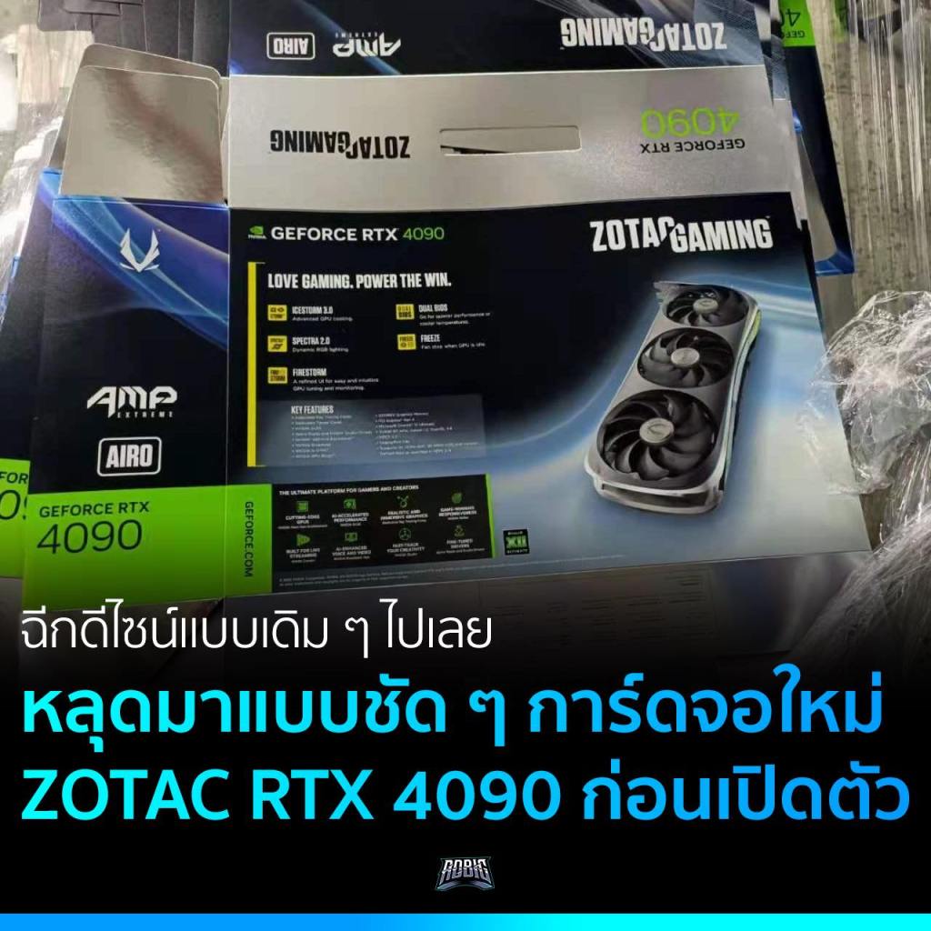 มาดูหน้าตาการ์ดจอตัวท็อปรุ่นใหม่ RTX 4090 จากค่าย ZOTAC กัน หลุดออกมาให้ดูกันแบบชัด ๆ ก่อนเปิดตัวอย่างเป็นทางการจาก NVIDIA