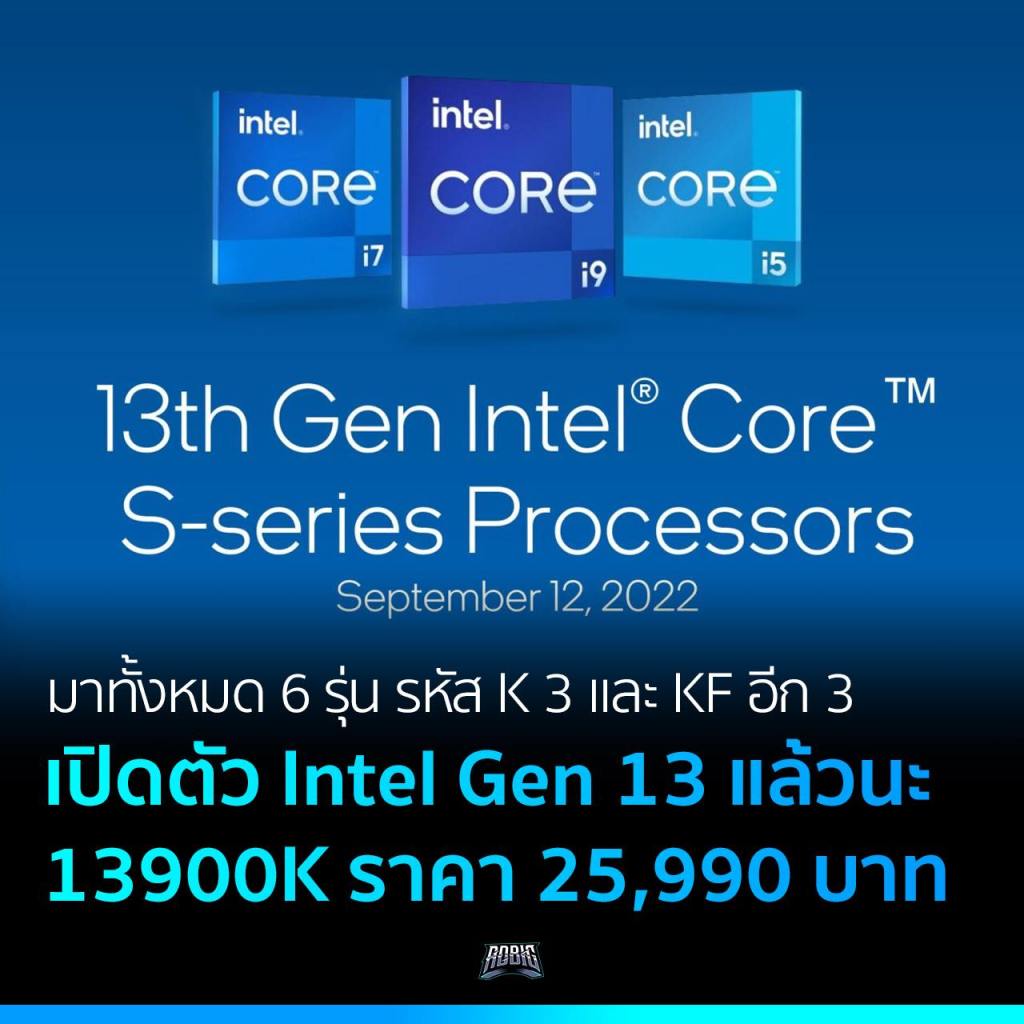 เปิดตัวมาแล้ว Intel Gen 13 รหัส Raptor Lake ที่รอคอย ราคาเริ่มต้นที่ 12,990 บาท เป็นรุ่นถูกสุดคือ Core i5-13600KF ส่วนตัวท็อปสุดก็ Core i9-13900K ราคา 25,990 บาท