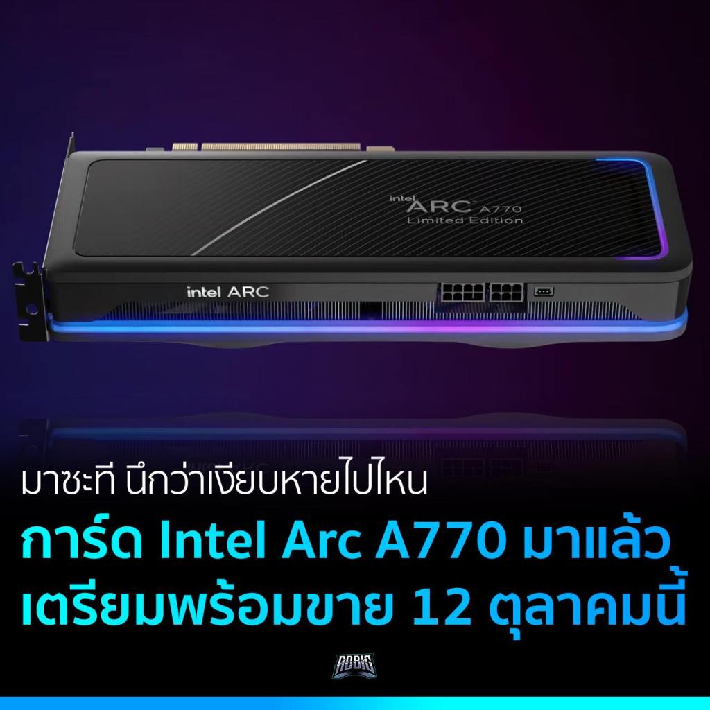 มาซะที รอมาตั้งนาน Intel ประกาศเปิดตัวการ์ดจอ Intel Arc A770 รุ่นท็อปสุดของตระกูลพร้อมขายวันที่ 12 ตุลาคม ด้วยราคาค่าตัว $329 หรือแปลงเป็นเงินไทยประมาณ 12,500 บาท