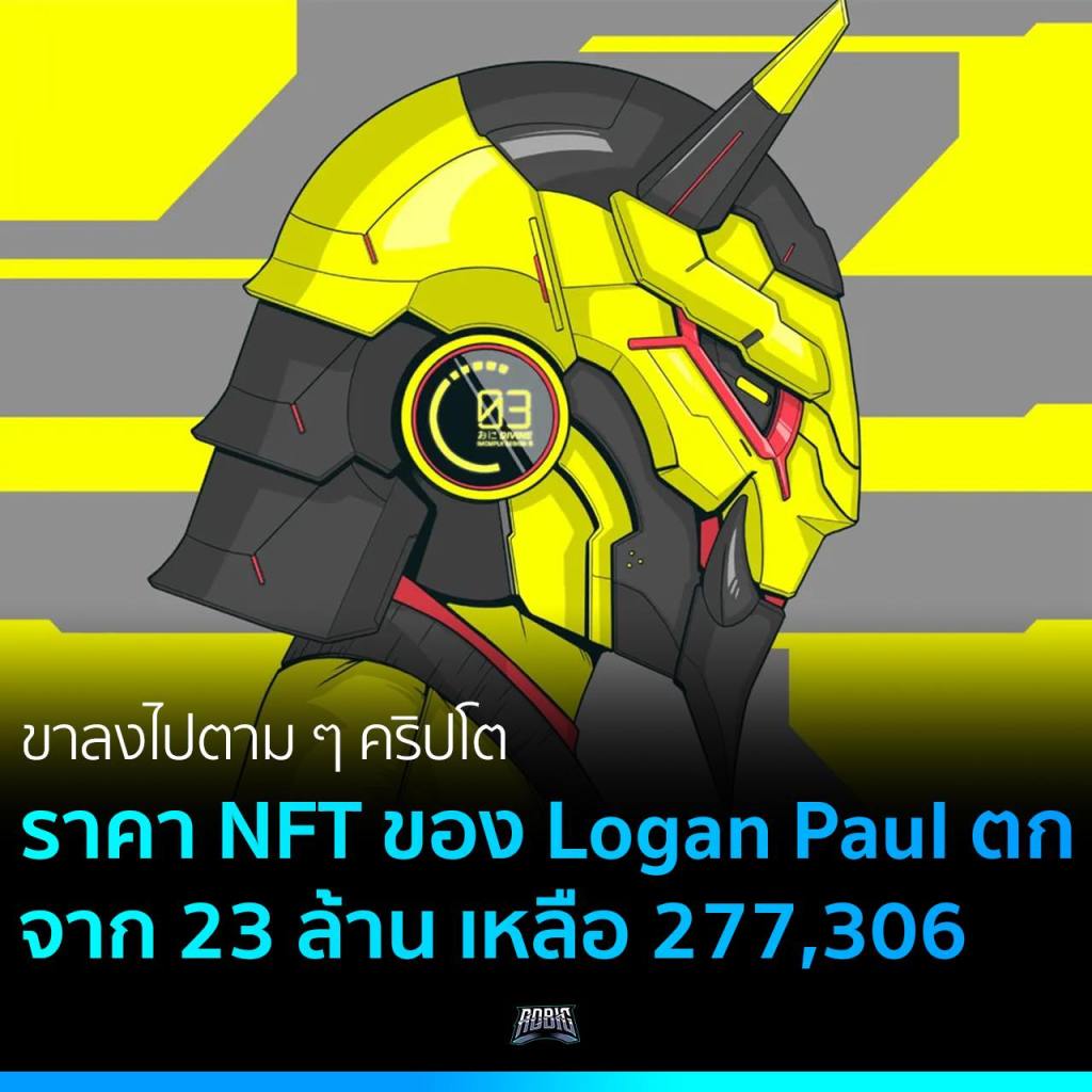 สาย YouTuber ต่างน่าจะรู้จักกันดีกับ Logan Paul และหนึ่งในสิ่งที่น่าสนใจก่อนหน้านี้ของเจ้าตัวคือการลงทุนใน NFT ผลงานชิ้นนึงที่ดูสวยและราคาค่าตัวสูงมาก ๆ คือ K4M-1 #03 ที่เป็นภาพตัวคาแรกเตอร์คนสวมหน้ากากหุ่นยนต์มีเขาสีเหลืองดำ ให้ฟีลลิ่งเหมือนหุ่น Bumblebee ที่จ่ายเงินซื้อมาในราคากว่า $623,000 หรือประมาณ 23 ล้านบาท