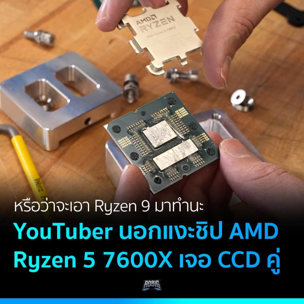 ช่อง YouTube นอก Der8auer แกะชิป AMD Ryzen 5 7600X ออกมาพบว่าภายในนั้นมี CCD Zen 4 จำนวน 2 ตัว แทนที่จะเป็นตัวเดียว ซึ่งชิปตัวนี้ตามสเปกคือ 6 คอร์ 12 เธรด ไม่ได้จำเป็นต้องใช้ CCD เพิ่มอีกตัวเลยด้วยซ้ำ และตามสเปกของ AMD ชิปรุ่นที่ต่ำกว่า Ryzen 9 ทั้งหมดก็จะมาพร้อมกับ CCD เดียวหมด ก็เป็นที่น่าแปลกใจอยู่เหมือนกัน