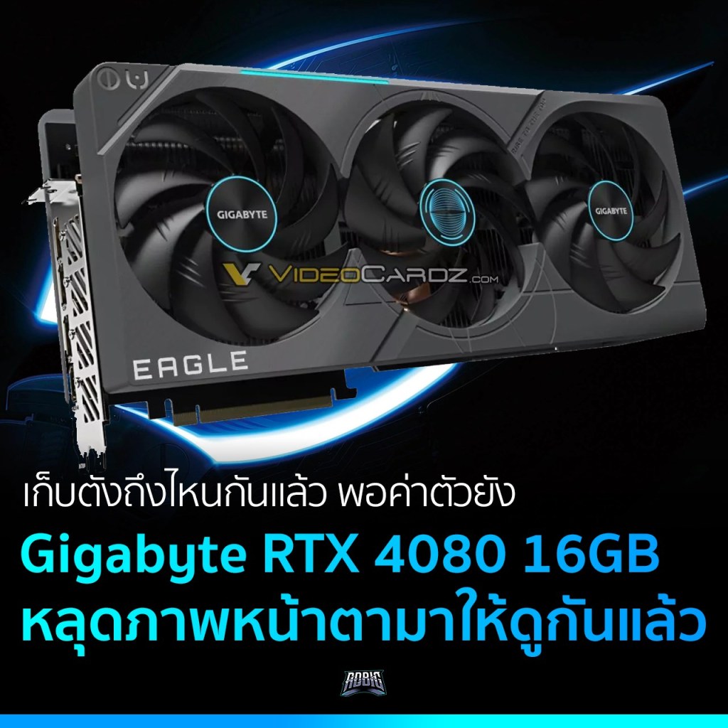 รูปการ์ดจอใหม่ Gigabyte GeForce RTX 4080 EAGLE มาแล้ว หน้าตาก็จะเหมือน ๆ กับ RTX 4090 เลย เรียกว่าภายนอกเหมือน ๆ กัน แตกต่างกันที่ไส้ในความแรงนะ