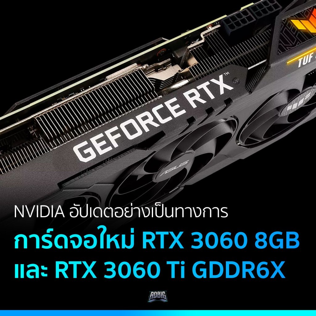 NVIDIA เปิดตัวการ์ดจอรุ่น GeForce RTX 3060 8GB และ RTX 3060 Ti GDDR6X อย่างเป็นทางการแล้ว ผ่านซอฟต์แวร์ไดรเวอร์เวอร์ชันใหม่ ที่รองรับการ์ดทั้ง 2 รุ่นใหม่นี้