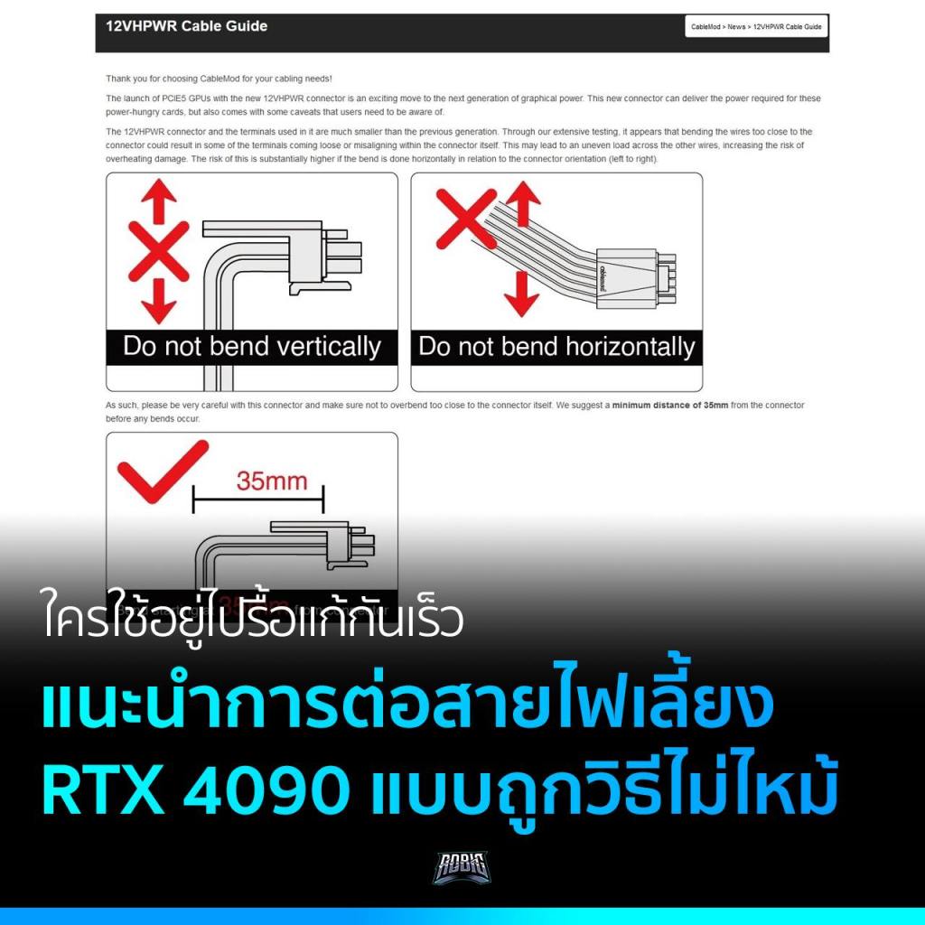ได้เห็นเคสการ์ดจอใหม่ RTX 4090 ที่หัวต่อไฟเลี้ยงแบบใหม่ไหม้ละลายคาสายกันไปแล้ว ลองดูมาขั้นตอนการเสียบต่อสายหัวไฟเลี้ยงแบบใหม่นี้อย่างถูกวิธีกัน เผื่อว่าใครที่ใช้อยู่จะได้เอาไปใช้ ป้องกันไม่ให้เกิดเหตุไหม้เหมือนที่เห็นในอินเทอร์เน็ตกันได้