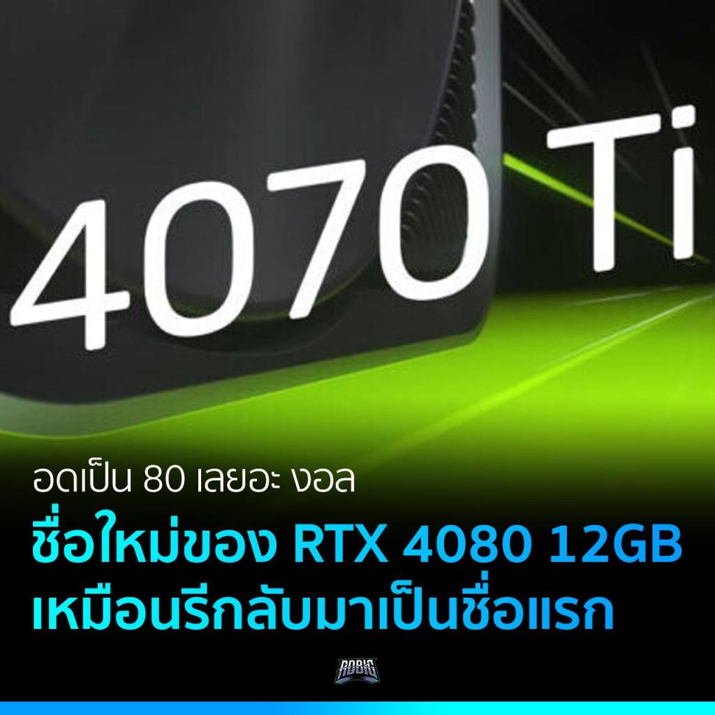 ชื่อใหม่ของการ์ดจอ NVIDIA GeForce RTX 4080 12GB ที่มีการประกาศยกเลิกชื่อไป ตอนนี้มีข้อมูลมาแล้วจะกลับมาใหม่ในชื่อ RTX 4070 Ti คาดว่าจะเปิดตัวในช่วงเดือนมกราคม 2023