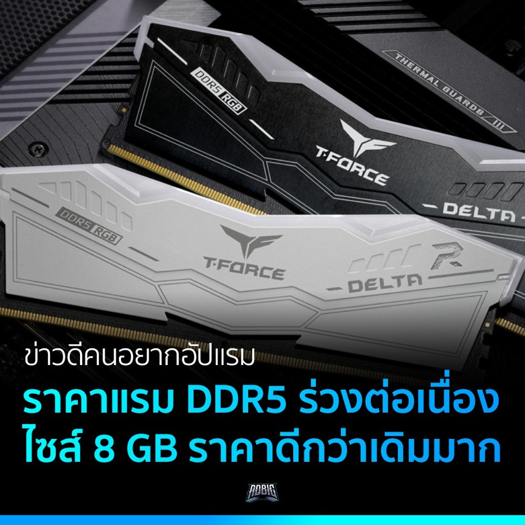 ราคาแรมช่วงนี้กำลังตก ตลาดชิป DRAM ราคาร่วงลงมากว่า 40% กระทบทั้ง DDR3 และ DDR4 ส่วน DDR5 ตัวใหม่ล่าสุดเองก็เริ่มตกลงมาแล้วด้วยเช่นเดียวกัน