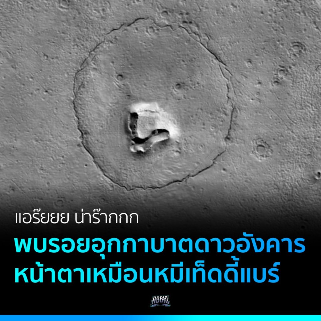 ปกติแล้ว บนพื้นผิวดาวดวงต่าง ๆ รอบ ๆ โลกของเราก็มักจะมีรอยอุกกาบาต หรือหลุด ๆ ดวง ๆ ต่าง ๆ ให้เห็นกันมากมายเป็นปกติ แต่ล่าสุดมีรอยนึงที่นักวิทยาศาสตร์พบบนดาวอังคาร ที่มีลักษณะคล้ายหมีเท็ดดี้เลย