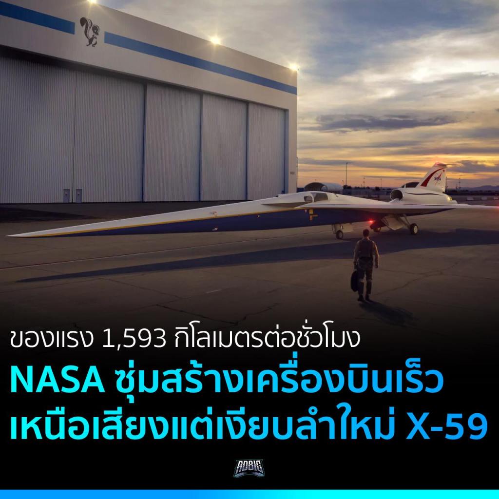 ตัวเครื่องมีชื่อเรียกว่า X-59 เป็นเครื่องบินความเร็วสูงที่เร็วกว่าเสียง แต่มีความล้ำด้วยการพัฒนาให้มีความเงียบมากยิ่งขึ้นกว่าเดิม และตั้งเป้าหมายว่าจะเอามาใช้บินเชิงพาณิชย์ได้สะดวกมากขึ้น เพราะเสียงรบกวนที่น้อยลงกว่าเดิม