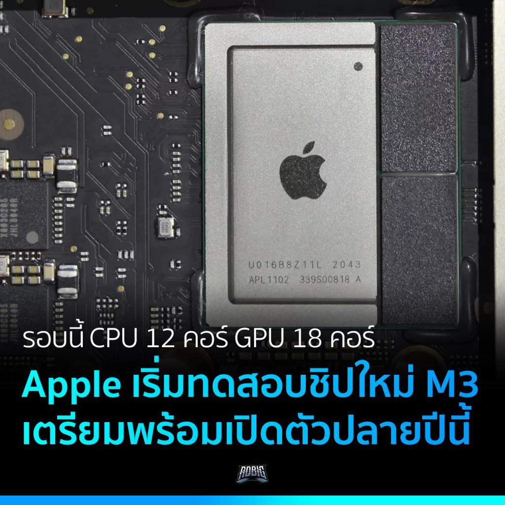Apple กำลังเริ่มทดสอบชิป M3 ตัวใหม่แล้ว เป็นชิป 12 คอร์ และมีคอร์ GPU หรือการ์ดจอ 18 คอร์