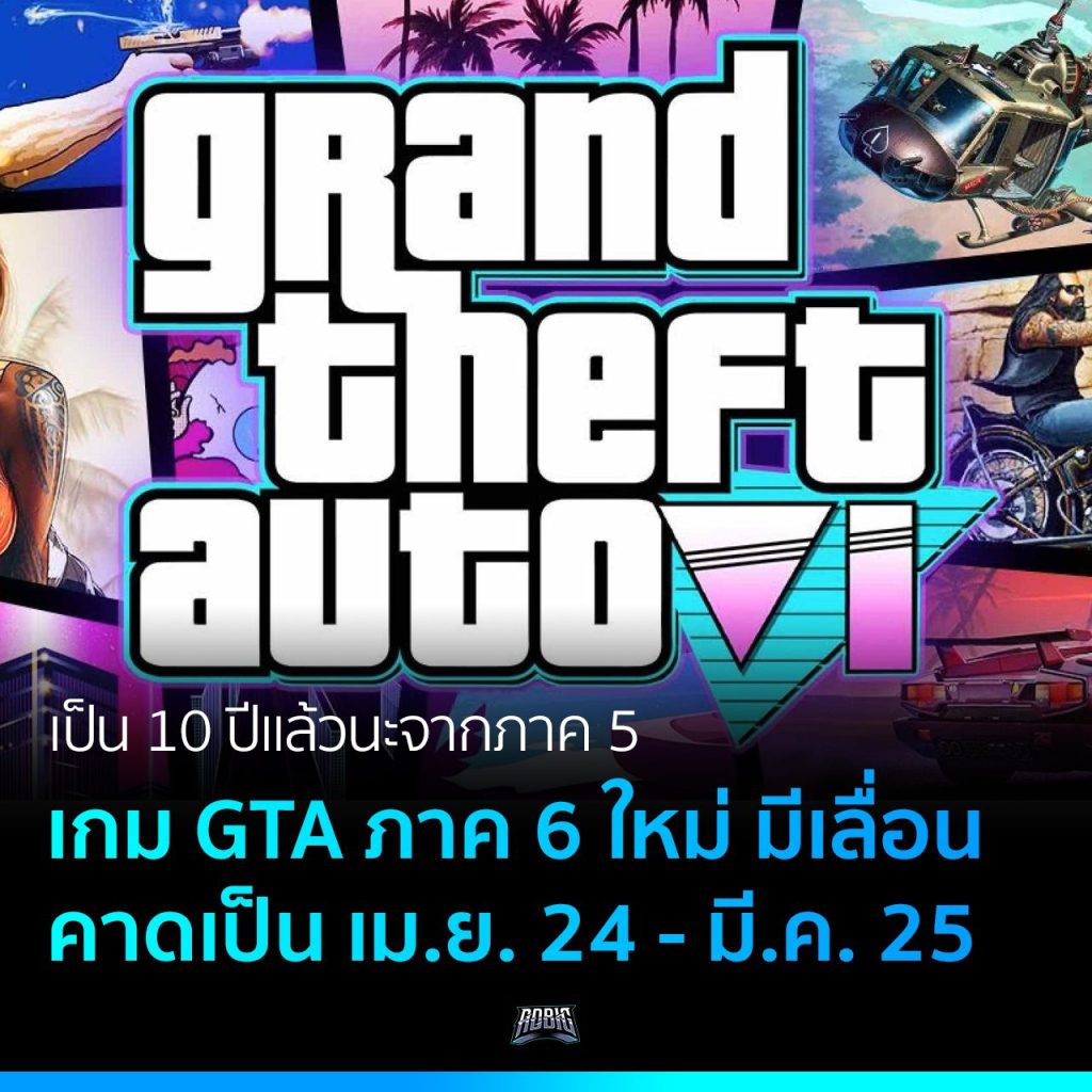 ข่าวร้ายสำหรับคนที่รอเกมภาคใหม่ GTA VI เพราะว่าอาจจะต้องเลื่อนออกไปถึงเดือนเมษายน 2024 หรือไม่ก็เป็น มีนาคม 2025