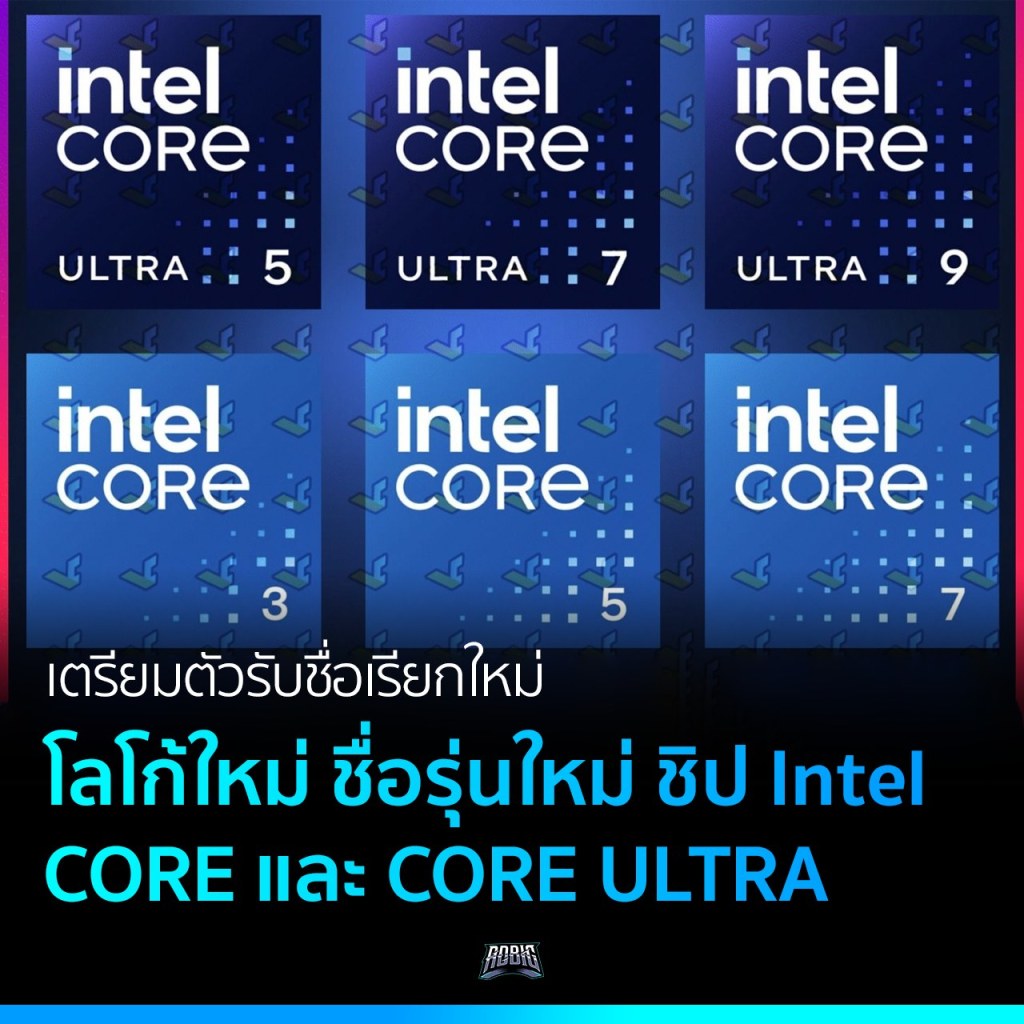 มาแล้ว ๆ ภาพสติ๊กเกอร์โลโก้ Intel Core ใหม่ ที่รอบนี้เปลี่ยนชื่อใหม่ตัดตัว i ออกไปแล้ว และแทนที่ด้วยเลข 3, 5, 7 เปล่า ๆ แทน และรุ่นแรงที่เพิ่มคำว่า ULTRA เข้าไปในรุ่นบน ULTRA 5, ULTRA 7 และ ULTRA 9