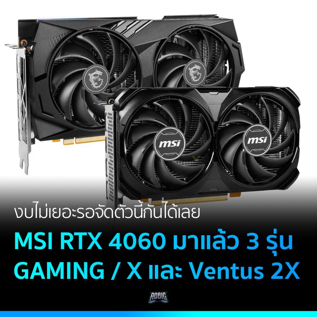 สำหรับรุ่นของ MSI นั้นจะมีมาด้วยกัน 3 ตัวคือ MSI RTX 4060 GAMING X ที่มาพร้อมกับความแรงยืนพื้นที่ 2595 MHz และบูสต์ 2610 MHz และอีกตัวเป็น MSI RTX 4060 GAMING ความแรงยืนพื้นที่ 2460 MHz และบูสต์ 2475 MHz ส่วนตัวที่ 3 จะเป็นไลน์ที่เล็กลงไปอีก คือ Ventus 2X Black ความเร็วบูสต์จะอยู่ช่วง 2475 – 2505 MHz และแม้ว่าจะยังไม่ใช่ mini-ITX แต่ก็มีขนาดการ์ดที่สั้นน้อยกว่า 20 ซม. ติดตั้งได้ง่ายไม่กินเนื้อที่เลย