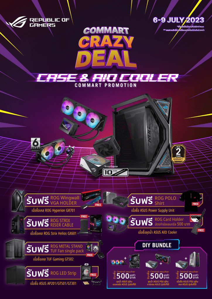 - เมื่อซื้อ ชุดระบายความร้อนด้วยน้ำทุกรุ่น รับฟรี ROG Card Holder และ บัตรกำนัลเซ็นทรัล มูลค่า 500 บาท