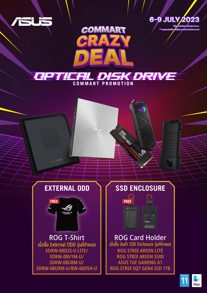 - เมื่อซื้อ External optical disk drive รุ่นที่ร่วมรายการ รับฟรี ROG T-Shirt