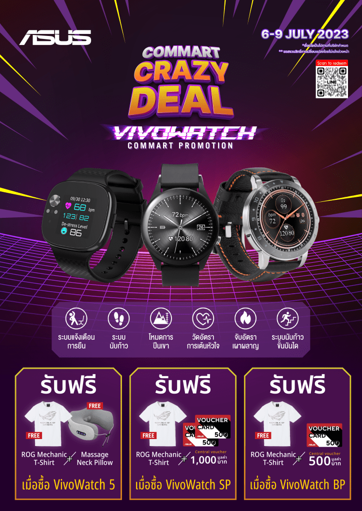 - เมื่อซื้อ VivoWatch BP รับฟรี ROG Mechanic T-Shirt และ บัตรกำนัลเซ็นทรัล มูลค่า 500 บาท