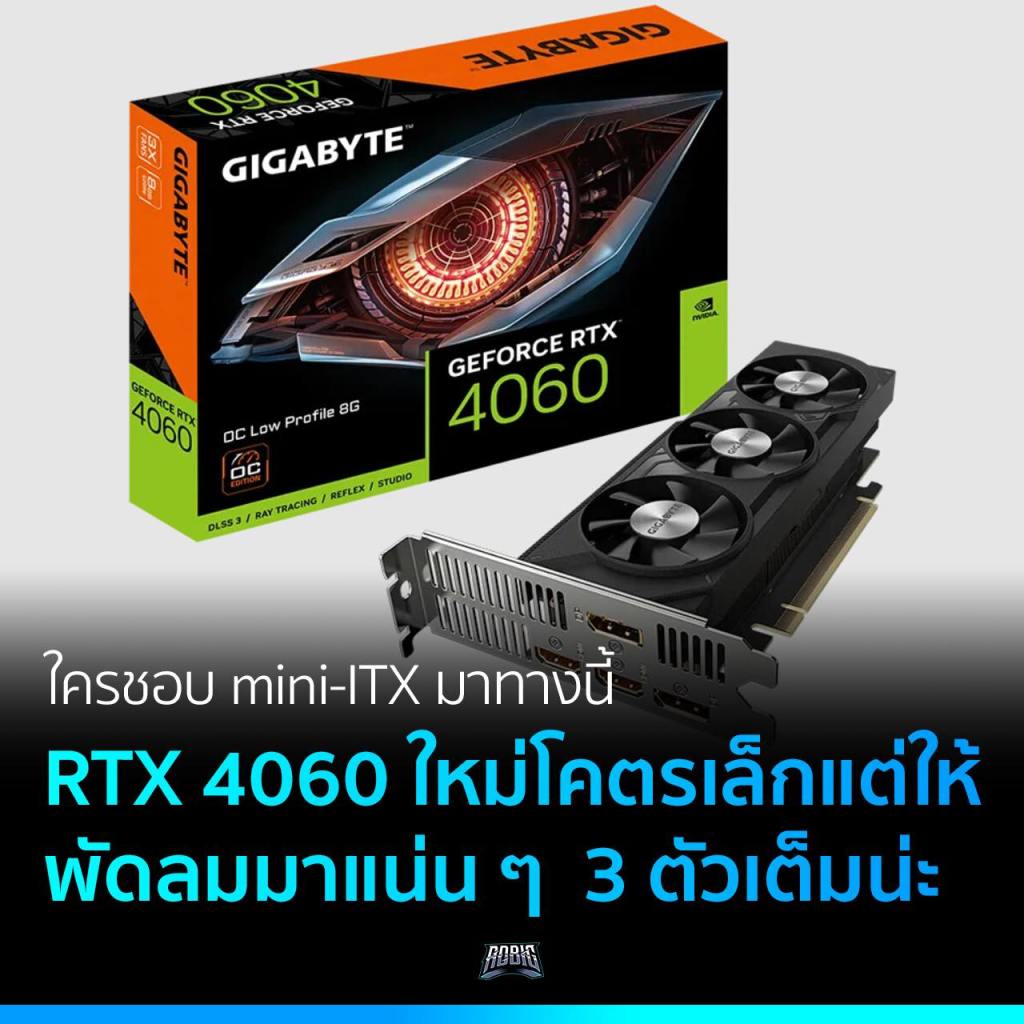 การ์ดจอใบใหม่ล่าสุด Gigabyte GeForce RTX 4060 OC Low Profile 8G มาในขนาดเล็ก ๆ กะทัดรัด ใส่เคสเล็กแค่ไหนก็สบาย ๆ ให้ความแรงไม่น้อยกว่าเดิม ๆ ด้วย