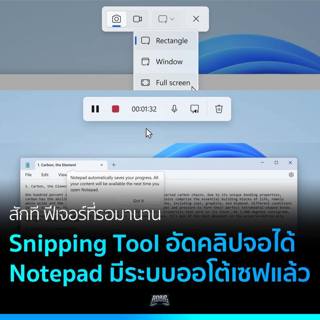 Microsoft อัปเดตฟีเจอร์ความสามารถของโปรแกรม Snipping Tool และ Notepad ให้เก่งกว่าเดิมขึ้นไปอีก