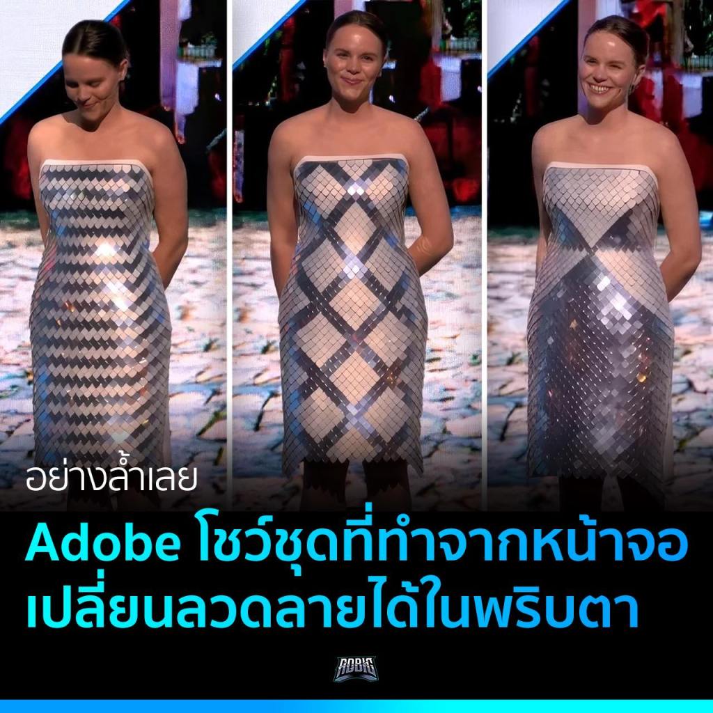 ในงานประชุม Adobe Max ที่ Los Angeles มีการเอาเสื้อผ้าที่ผสมผสานเทคโนโลยีมาโชว์ให้ดูแบบน่าตื่นตาตื่นใจมาก ๆ จากผลงานของนักวิจัย Adobe Dr. Christine Dierk ที่สวมชุดเกาะอกขึ้นมาบนเวที พร้อมกับเปลี่ยนลวดลายของเสื้อได้ในพริบตา