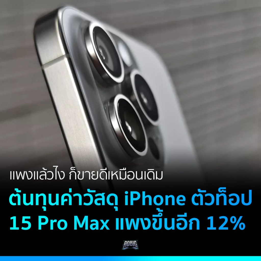 ต้นทุนค่าวัสดุของตัวเครื่อง iPhone 15 Pro Max ตัวใหม่ล่าสุดของ Apple นั้น คิดออกมาได้อยู่ที่ $558 หรือประมาณ 20,200 บาท ซึ่งสูงกว่ารุ่นเดิมอย่าง iPhone 14 Pro Max อยู่ราว ๆ 12%