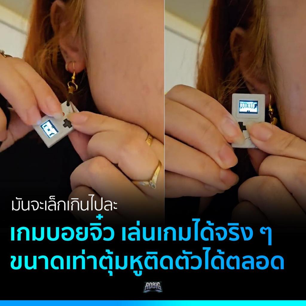 เล็กขนาดว่าเอามาห้อยเป็นตุ้มหูได้เลย แล้วสเปกคือจัดเต็ม หน้าจอ OLED มีปุ่ม D-Pad มีปุ่ม A/B มีเกมให้เล่นถึง 5 เกม และเกมยอดฮิตอมตะอย่าง DOOM ก็เล่นได้ด้วย