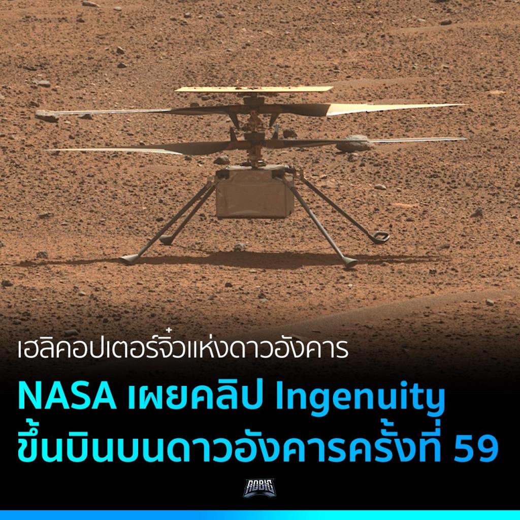NASA ปล่อยคลิปวิดีโอใหม่ 2 ตัว โชว์การบินของเฮลิคอปเตอร์เล็ก Ingenuity ที่ขึ้นบินเป็นรอบที่ 59 บนดาวอังคารมาให้ดูกันเพิ่มแล้ว