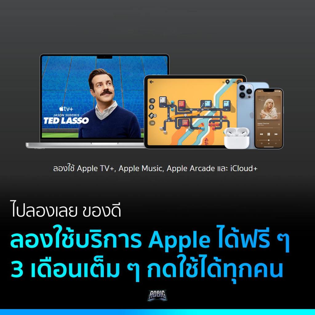 มีสิทธิพิเศษดี ๆ มาแนะนำที่ต้องไปเก็บมาใช้กันด้วยนะ นั่นก็คือช่วงเวลาทดลองใช้งานบริการ Apple ฟรีนานถึง 3 เดือนเลย ทั้ง Apple TV+, Apple Music, Apple Arcade และ iCloud+