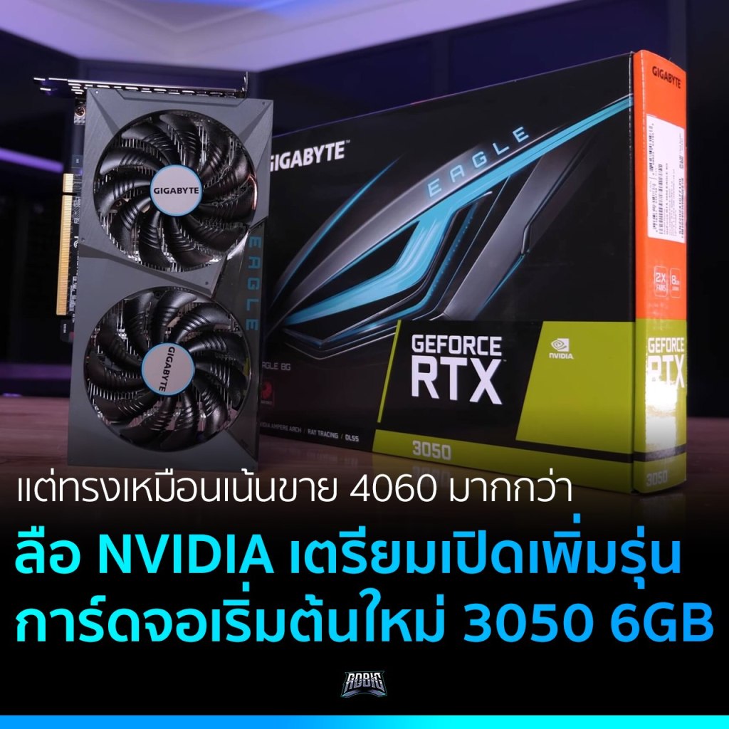 ดูเหมือนว่า NVIDIA จะยังเห็นโอกาสสำหรับตลาดการ์ดจอกลุ่มผู้เริ่มต้นอยู่ไม่น้อย เพราะดูเหมือนว่ากำลังเตรียมจะเปิดตัวรุ่นใหม่ RTX 3050 ที่มาพร้อมแรมในตัวขนาด 6GB