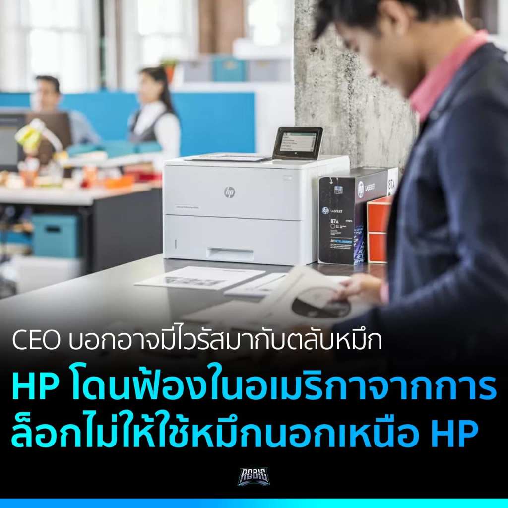 HP กำลังเผชิญกับการฟ้องร้องในอเมริกา จากการอัปเดตเฟิร์มแวร์ตัวใหม่ ที่จะปิดการทำงานของเครื่องพิมพ์เมื่อตรวจพบว่าใช้ตลับหมึกทดแทนที่ไม่ใช่ของ HP เอง พร้อม ๆ กับเป็นจังหวะแบบบังเอิญที่ราคาหมึกของ HP นั้นมีการปรับราคาขึ้นด้วย