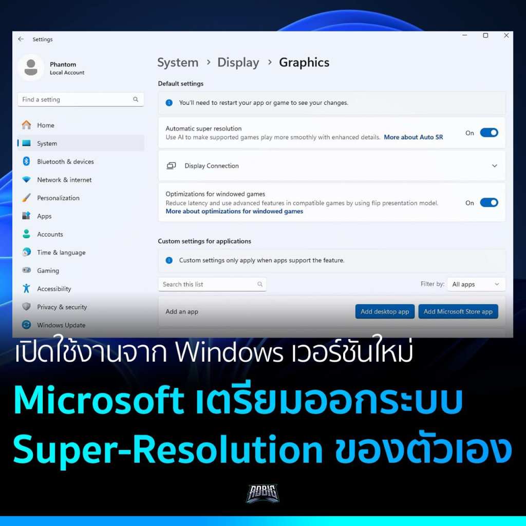 ระบบ Windows 11 เวอร์ชันทดสอบภายใน Insider Build 24H2 โชว์หน้าเมนูปรับแต่งใหม่ “Automatic Super Resolution” หรือ ASR