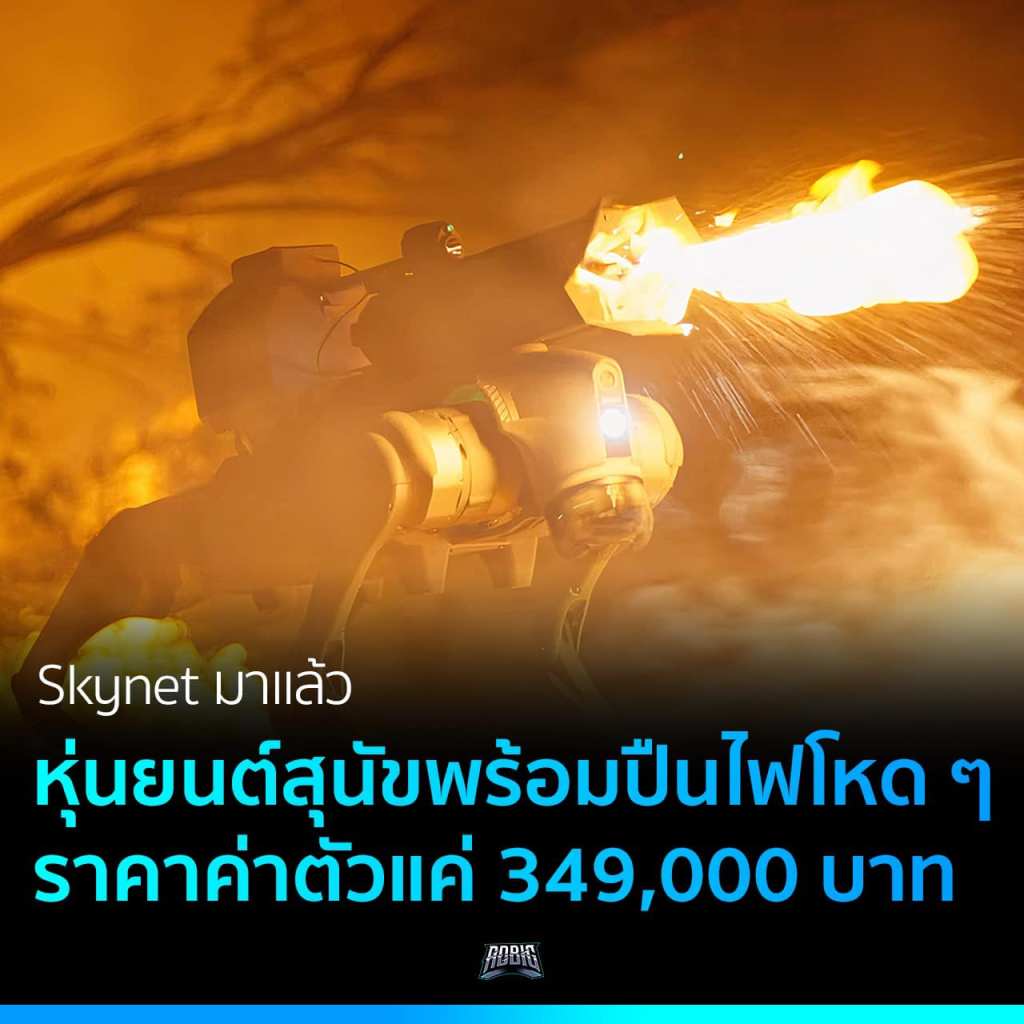 หุ่นยนต์ Unitree Go2 ที่มารอบนี้กลายเป็นหุ่นทำลายล้าง Thermonator มาพร้อมกับปืนยิงไฟ ARC flamethrower มาด้วย พร้อมราคาค่าตัว $9,420 หรือประมาณ 349,000 บาท