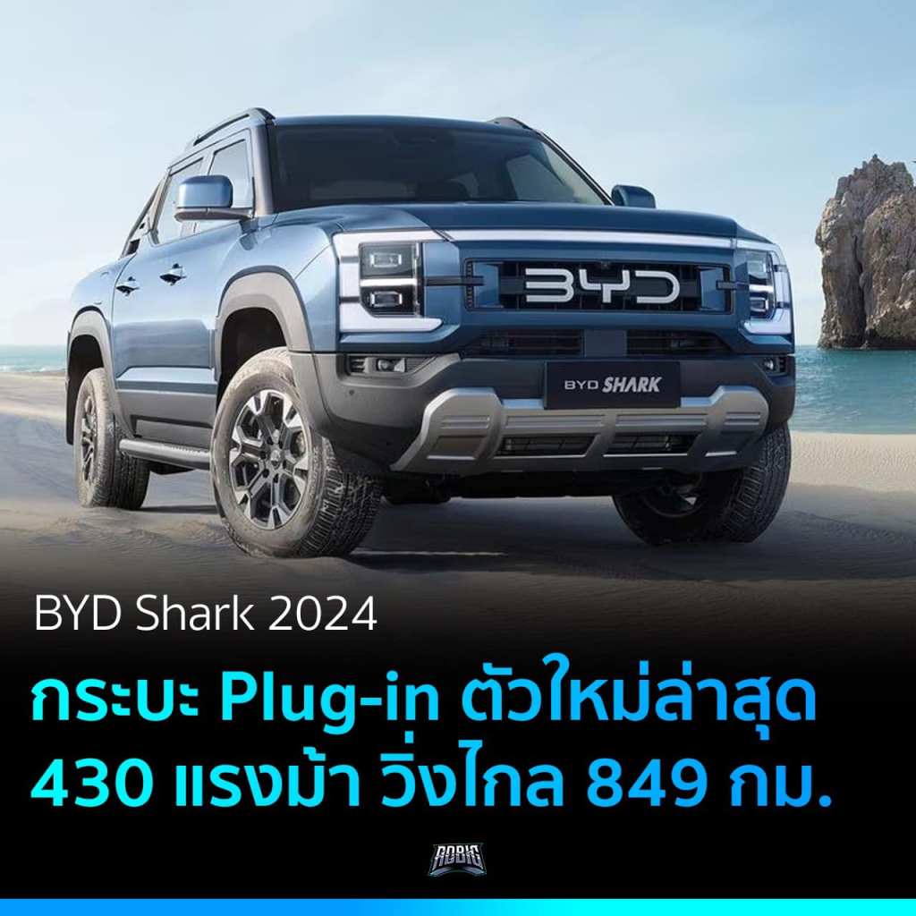 BYD Shark 2024 รถกระบะระบบ Plug-in Hybrid รุ่นใหม่ล่าสุด มาพร้อมกำลังแรงม้าสูงถึง 430 แรงม้า ระยะทางวิ่งได้ไกลถึง 849 กิโลเมตร